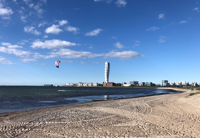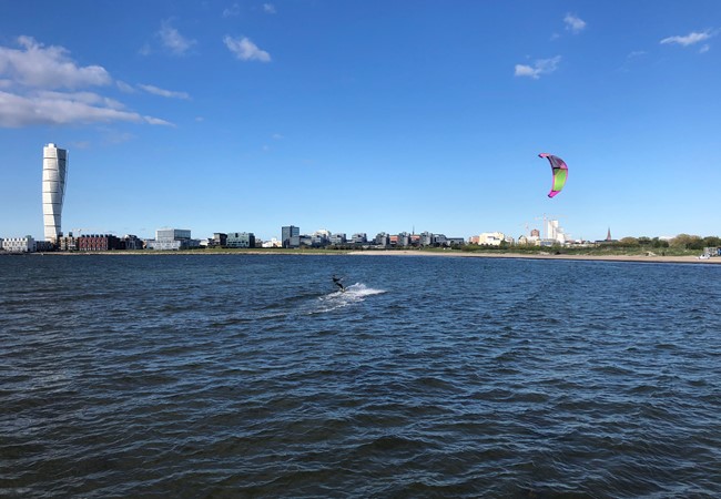Malmös mest besökta strand Ribersborg ligger bara en kort promenad från centrum med fantastiskt utsikt över Öresundsbron, Danmark och Turning Torso. Det här är en familjevänlig strand med faciliteter som toaletter, uteduschar och ett flertal kaféer och kiosker. Man kan kitesurfa endast höger om Kallbadhuset. Oftast lite små vågigt och de idealiska vindförhållandena är nordliga vindar. Platsen är inte nybörjarvänlig pga. bryggor i vatten, folk på stranden, stenar och en hel del turbulens kring Kallbadhuset. Siffran 5 nedan betyder "Mycket bra" och siffran 0 betyder "helt avsaknad".